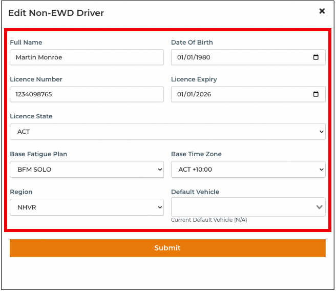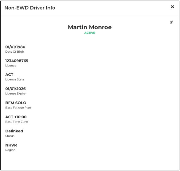 - The Edit Non-EWD Driver window will appear, in this window you can update the following information: