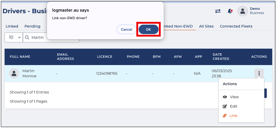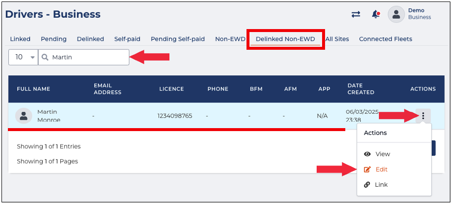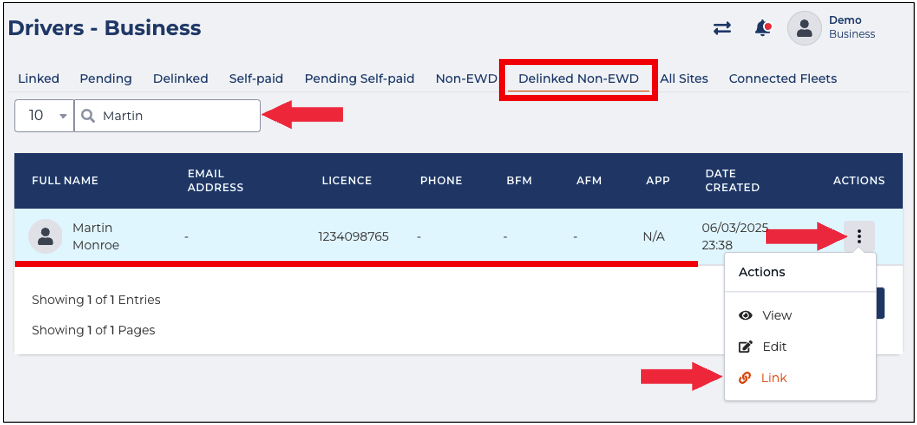 In this article, you will learn how to access, view, update, and link delinked non-electronic work diary (Non-EWD) drivers. The sections below will walk you through the Delinked Non-EWD tab functionality.